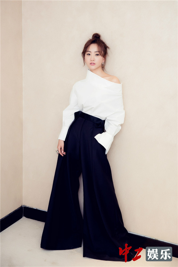 杨蓉白衬衣阔腿裤配丸子头 网友:太时髦word蓉