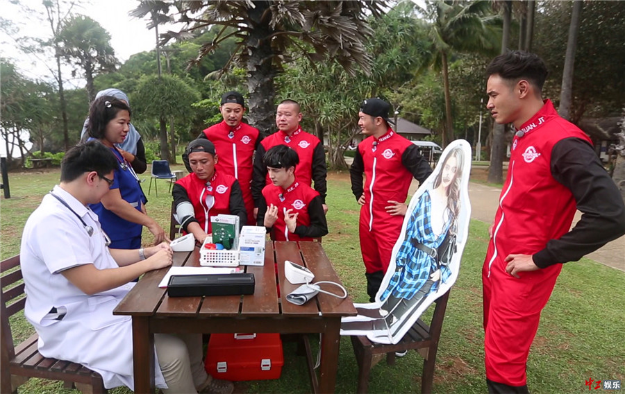 岳云鹏做检查时,也紧闭双眼,一脸的痛不欲生。去年岳云鹏曾发过微博,透露因面部肿瘤做了手术,现在要去高空挑战,让岳云鹏想起了这茬,生怕手术影响做任务。英语不好的他,指着自己的脸比比划划求翻译,“我这一年前做过手术,跟他说,开过刀。”“手术”一词超出了挑战者的英语单词库,薛之谦自告奋勇,用有限词汇做出了另类翻译,竟告诉医生岳云鹏原来很丑,后来整过容。这样奇葩的理由,让医生听得一脸懵。