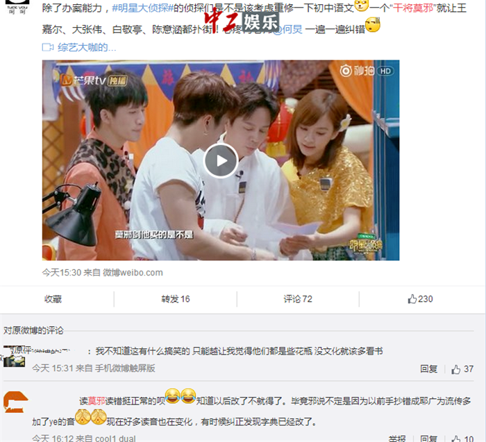 在给《步步惊心2》片花中,刘诗诗将“每当我沮丧或难过的时候”中的“沮(ju)丧”读成“且(qie)丧”,还因此被网友戏称为“且丧姐”。