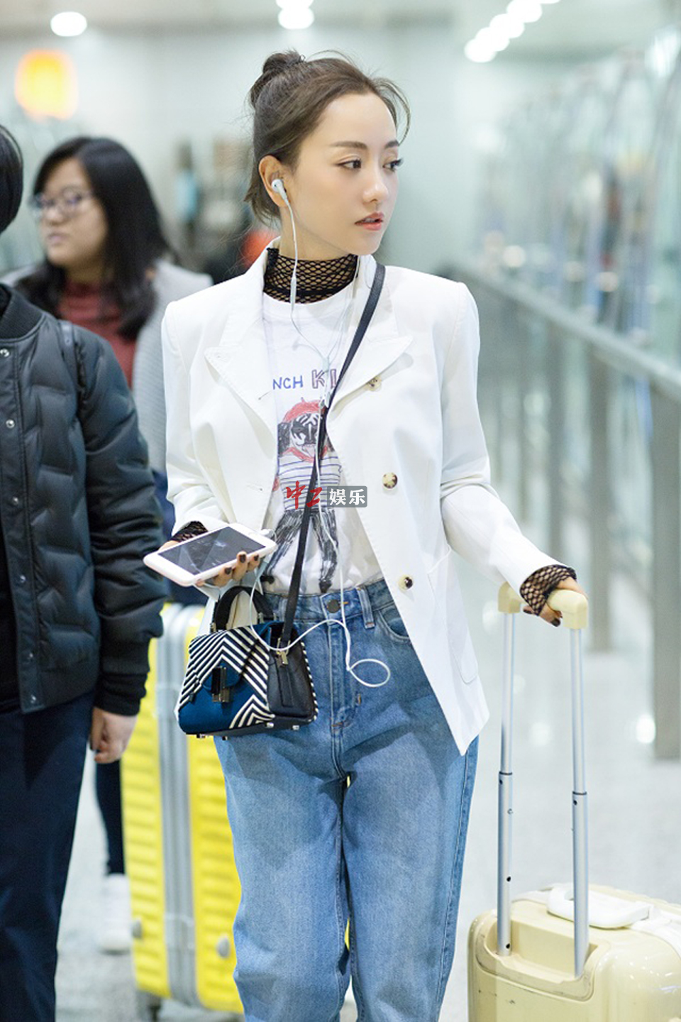 渔网装搭T恤! 杨蓉春装出街很时髦!