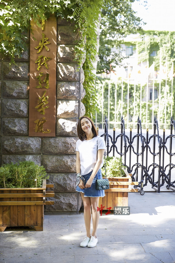 王智重返母校中戏 白衣短裙宛若青葱少女