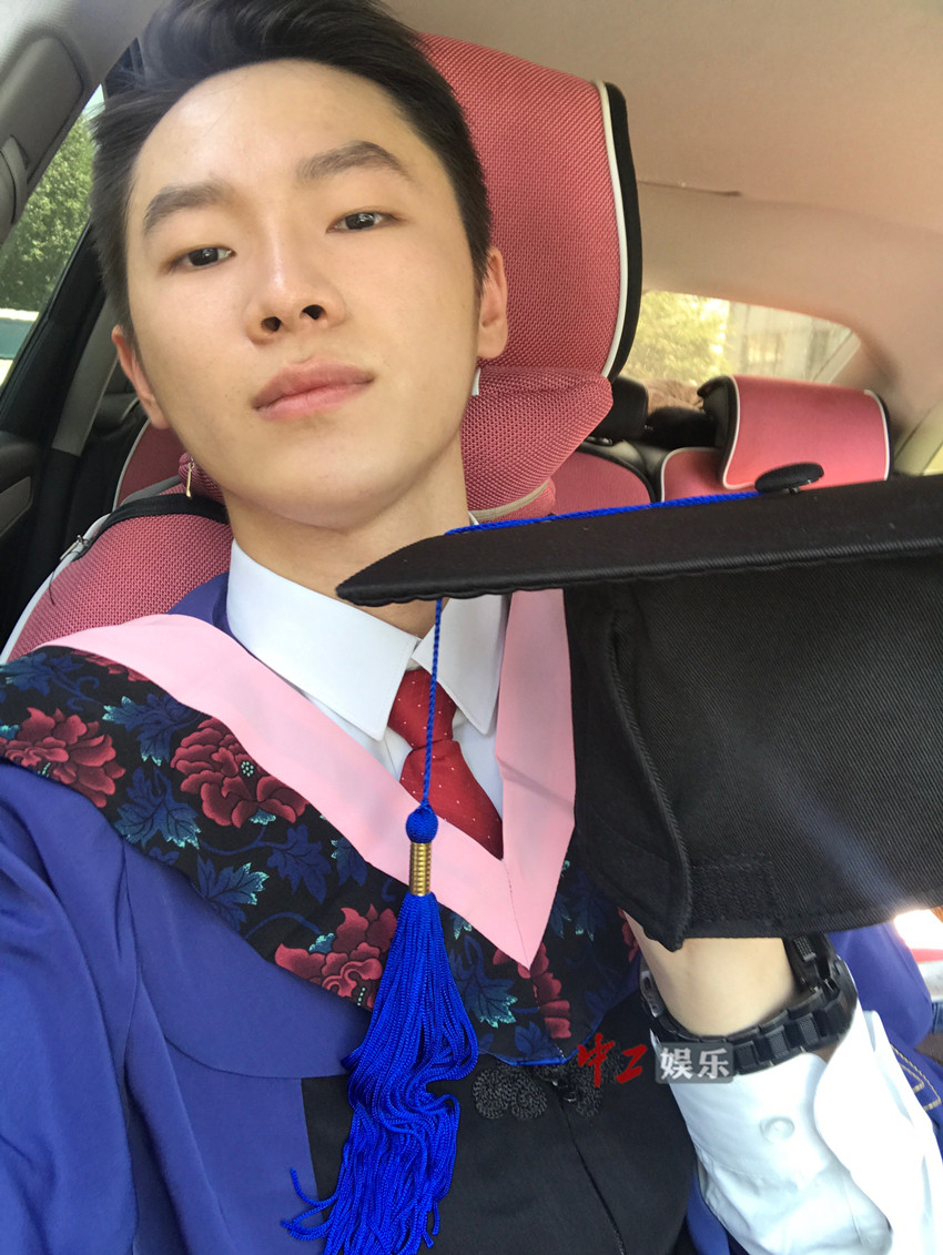 中工娱乐2017年7月6日报道 7月5日,梁博身穿蓝色硕士服,现身吉林艺术学院流行音乐学院毕业典礼现场,被授予艺术硕士学位的他,今天正式告别学生时代,大步跨入更加开阔的世界。
