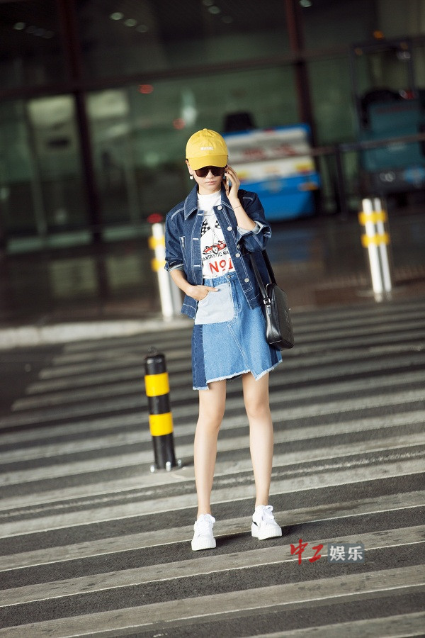 杨蓉牛仔造型时髦出街 短发随意扎起简单清爽