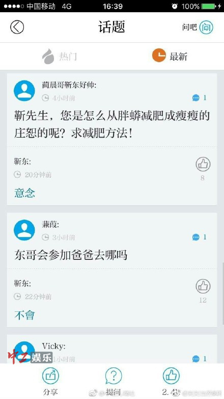 一份疑似《爸爸5》导演组的聊天记录被曝光后,所有线索指向靳东,有娱乐博主猜测是节目组已经正式向靳东发出了邀请。而就在近日,靳东在接受某媒体采访时就被直接问到“是否会参加《爸爸去哪儿5》?”而靳东直爽的回应“不会。”获知此讯的网友支持其上亲子真人秀的热情并未退减,只因靳东在各大爆火影视剧中塑造的形象非常符合大家心中“完美爸爸”的人设,而其个人微博上偶尔表露的亲子生活照,也显示出靳东浓浓的父爱。网友纷纷留言:还有第六季、第七季、第八季……等靳东!