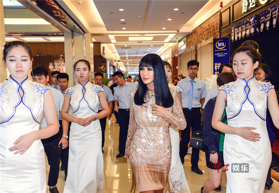 张咪金色连衣裙出席活动 大姐范儿十足