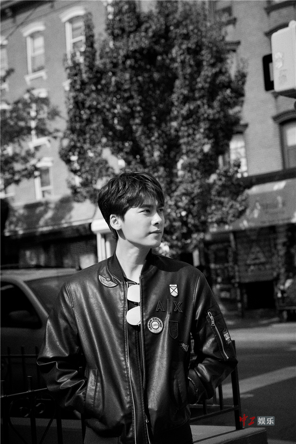片中,李易峰先是身着黑色机车皮衣搭配同色长裤漫步于异国街头,身姿挺拔英气十足,尽显迷人风尚。而另一组look中,李易峰则是身着简洁大气的黑色T恤,手持水杯或若有所思、或抬头凝望,举手投足间文艺气息浓厚,质感十足。
