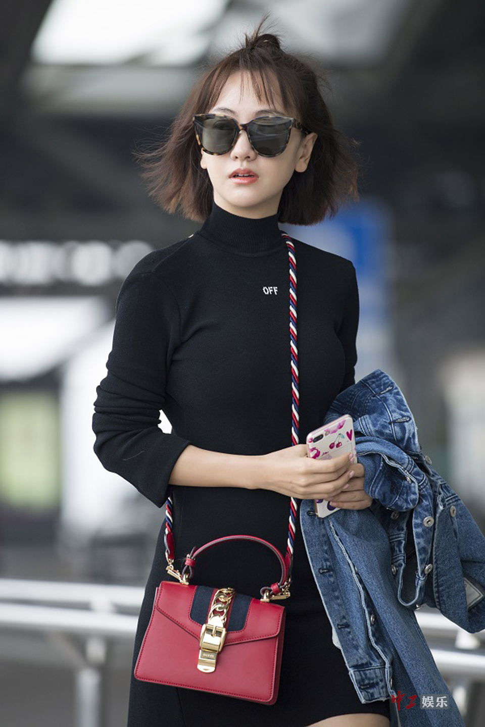 杨蓉寒风中现身机场 半丸子头十分减龄