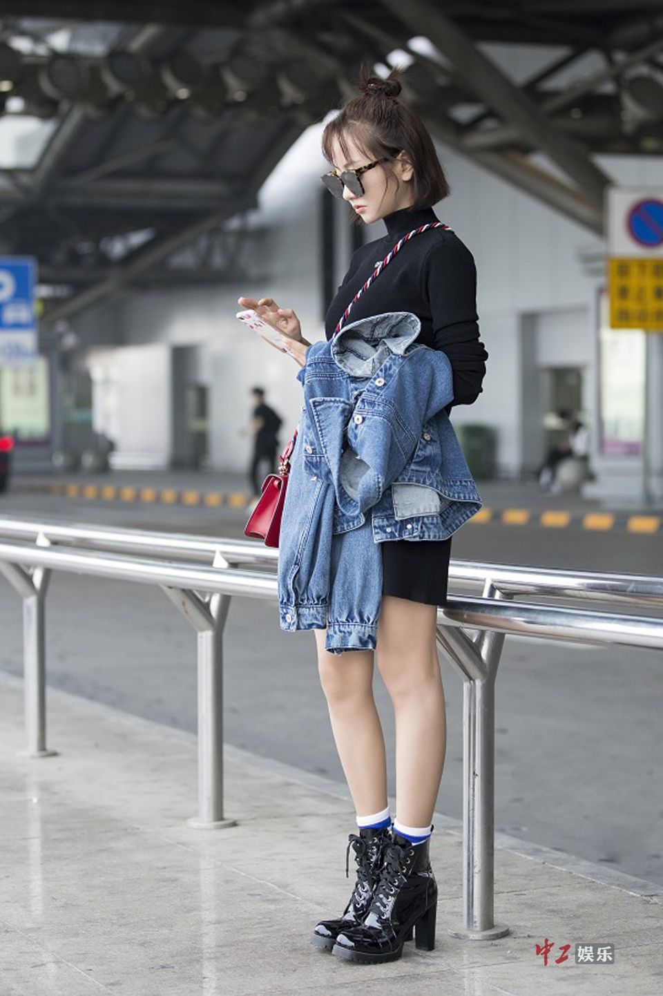 杨蓉寒风中现身机场 半丸子头十分减龄