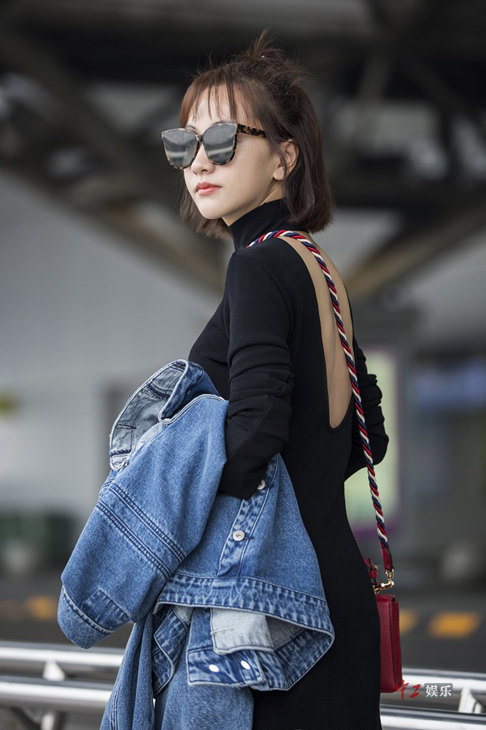 杨蓉寒风中现身机场 半丸子头十分减龄