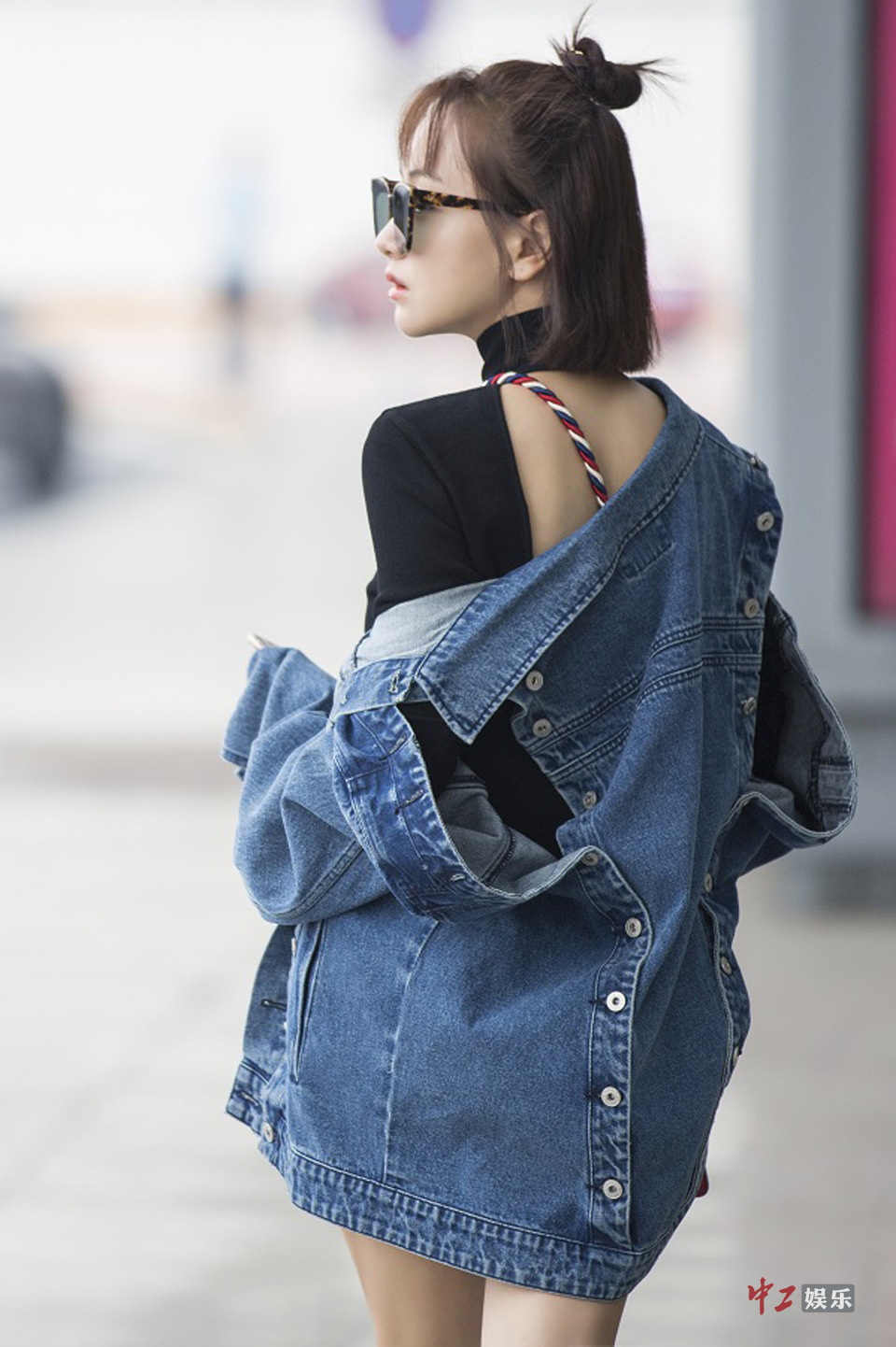 杨蓉寒风中现身机场 半丸子头十分减龄