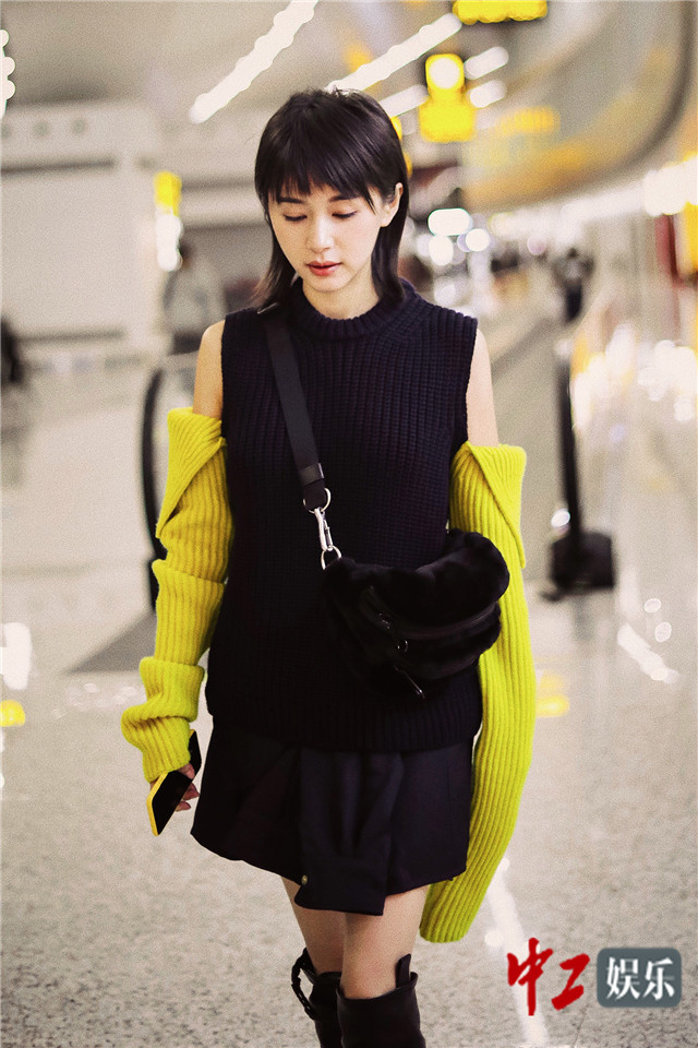 中工娱乐2017年11月13日报道 近日,王子文现身上海某机场。短裙加堆摺长靴显示出她好的身材比例,上身露肩毛衣配上斜挎休闲包俏皮可爱,全身黑色也依旧延续她独特的个性酷girl风采。而拼色亮黄折叠袖靓丽十足,为整套造型增添了一抹明丽和活泼。王子文或是刷手机或是讲电话,面对粉丝热情接机也露出可爱的笑容心情大好,活力十足全然不见旅程的疲惫。