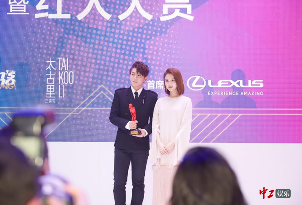 张慧雯获“年度实力女演员奖” 藕粉流苏裙仙气十足