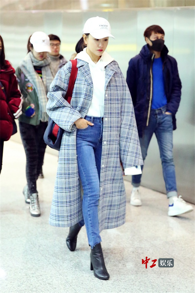 中工娱乐2018年1月4日报道 近日,杨蓉身着长款格子大衣内搭白色连帽卫衣现身北京机场,卫衣搭外套舒适、减龄又保暖。头戴白色棒球帽,手挎黑色大旅行包,休闲有态度,时尚度满分。