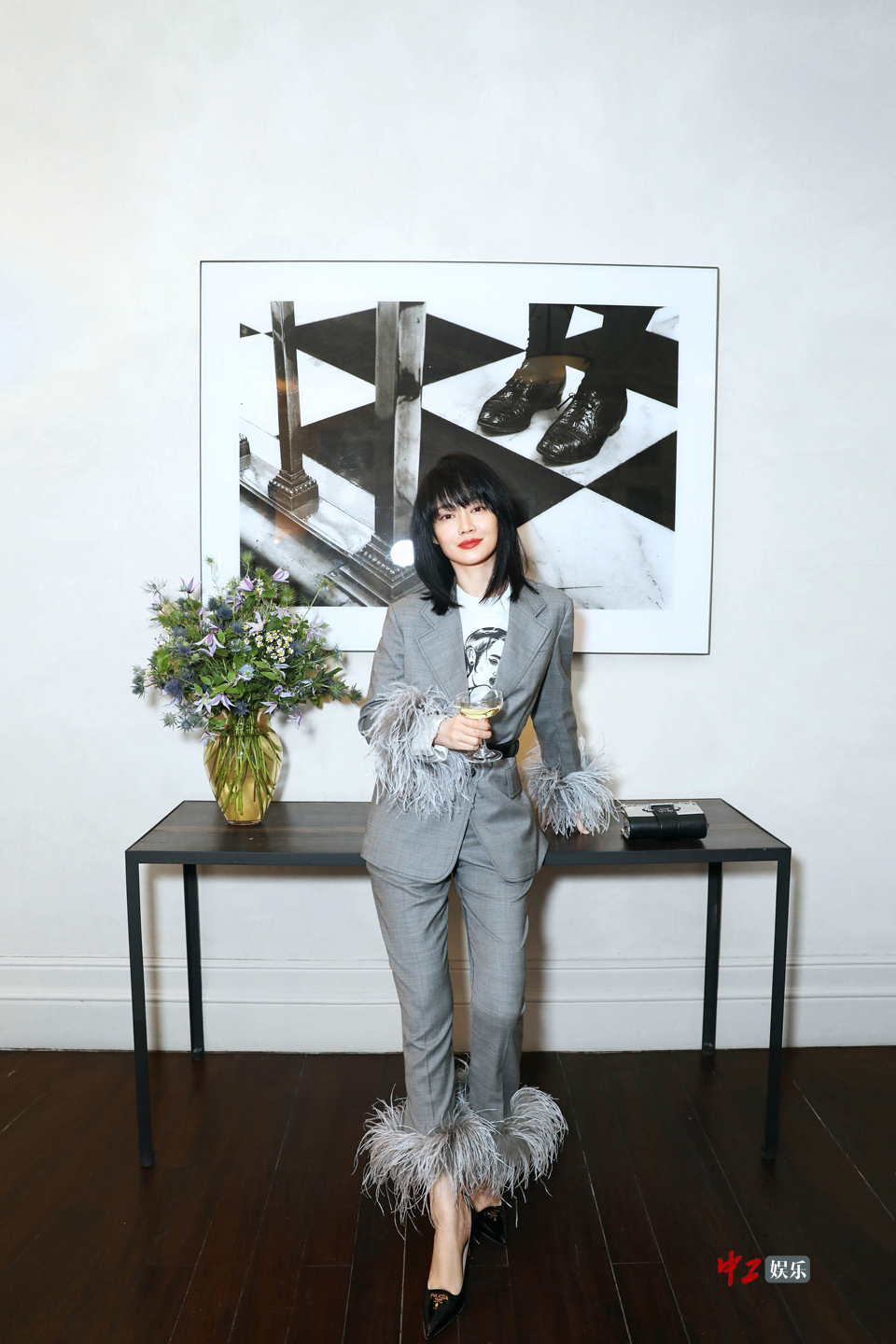 中工娱乐2018年3月23日报道 昨日,谭卓受品牌邀请出席位于上海荣宅的“罗马1950-1965”艺术展开幕仪式。一身剪裁得体的饰羽西服套装,既有着独立女性身上干练果敢的飒爽风姿,细节处装饰的轻盈羽毛,充满华贵的复古风情中又些许透露着粉红少女心。漆面高跟鞋与内搭的个性黑白漫画印花T恤,于无声处玩转后现代主义风格,强势风格下更加彰显女性魅力。
