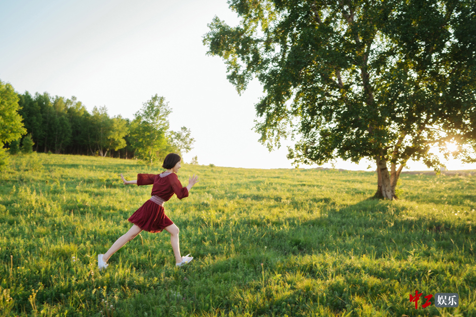 这组照片中练练在春日草地上自在洒脱,或低头浅笑静享阳光,或奔跑于自然美景里,开心大笑,展现出她热爱生活的飒意纯粹。