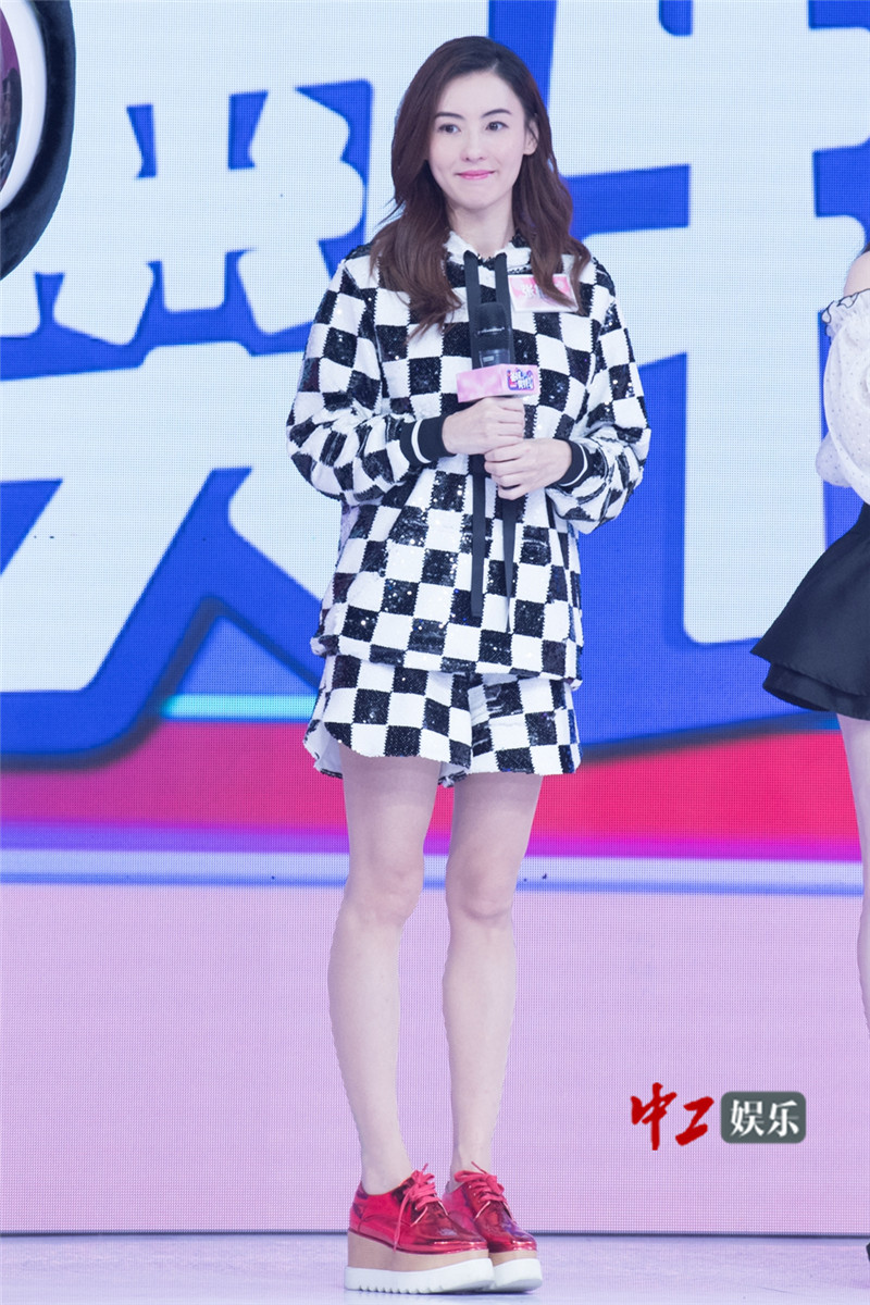 张柏芝帅气现身活动 穿超短裤秀美腿气场足