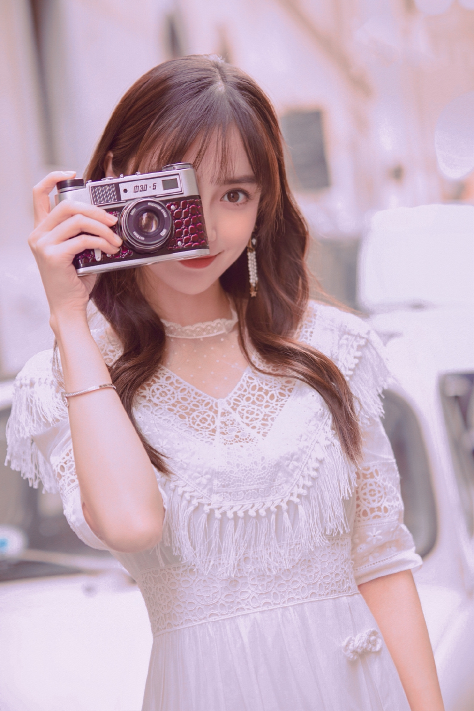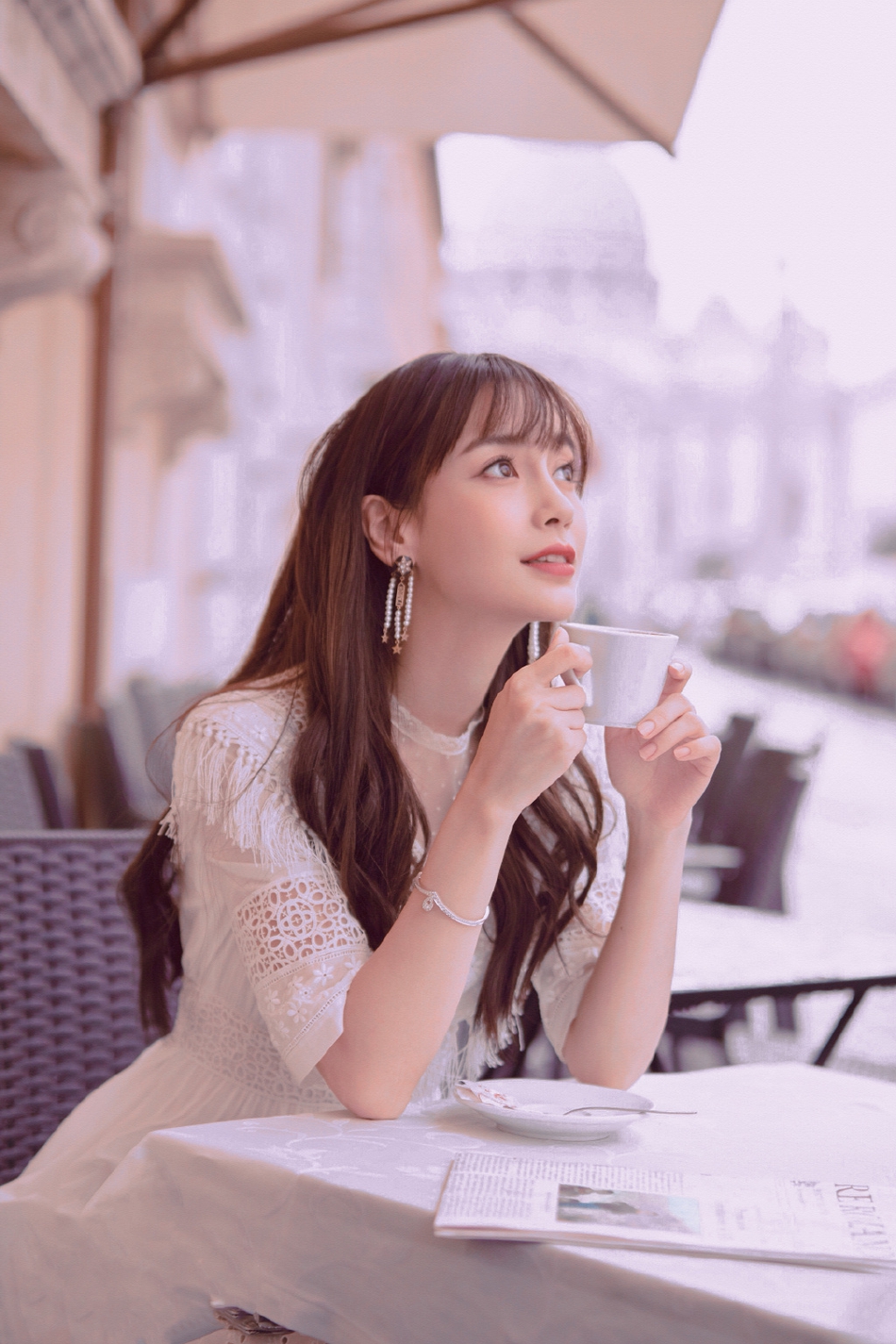 26日,Baby在意大利街头拍摄的一组美照曝光。照片中,Baby身穿纯白色长裙,领口处的镂空设计再搭配薄纱,显得十分优雅。阳光照在微卷长发上映出金色光圈,画面看起来恬静又美好。