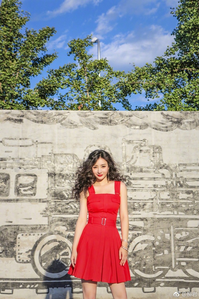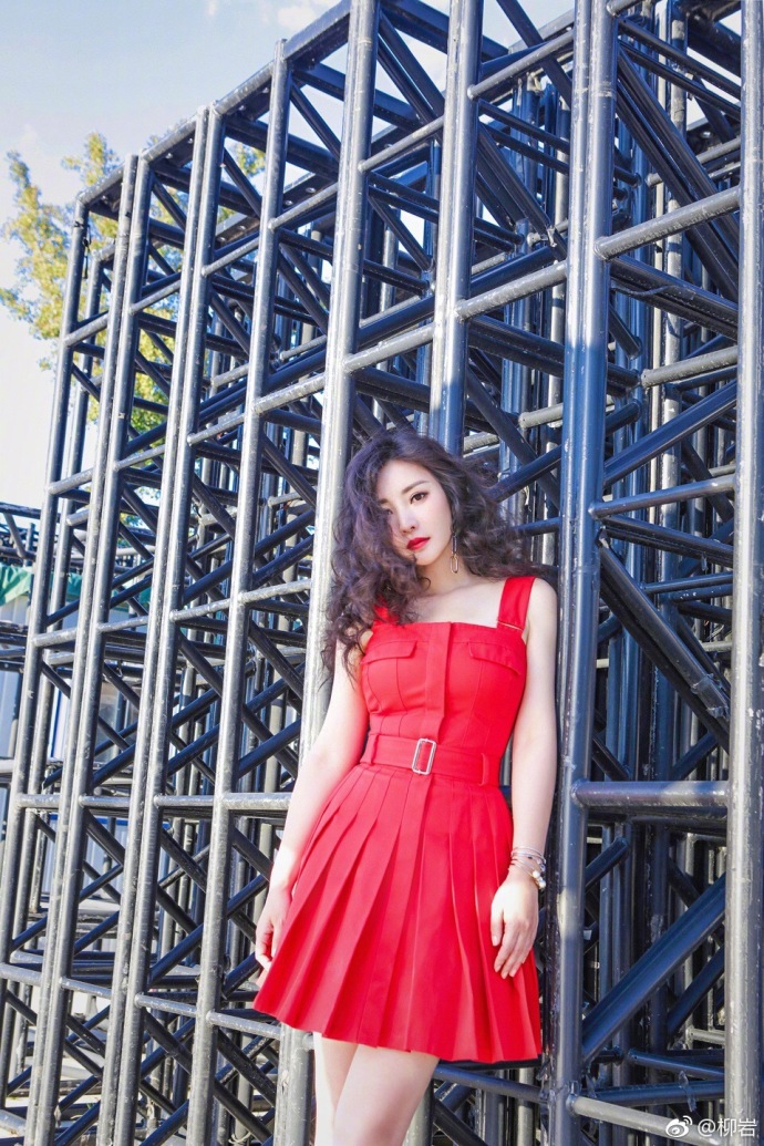 10月10日,柳岩在自己微博上传一组照片,并配文称:“我的爱对你说。”照片中的她身穿红色吊带裙,一头卷发十分吸睛。她红唇娇媚,上围傲人,十分性感。