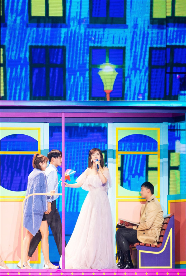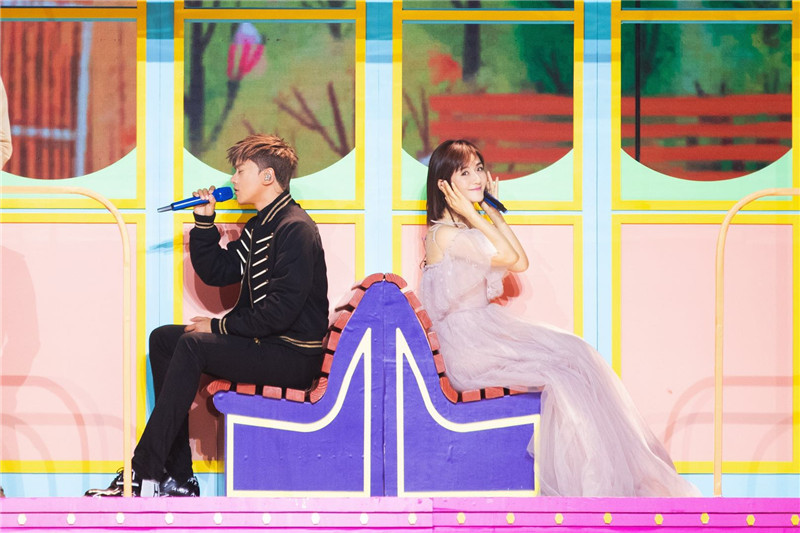 11月10日,谢娜与张杰以音乐剧的形式首次公开对唱《这就是爱》,节目中谢娜手拿彩色风车开场,身着粉色露肩长裙,笑眼弯弯,少女范儿十足。