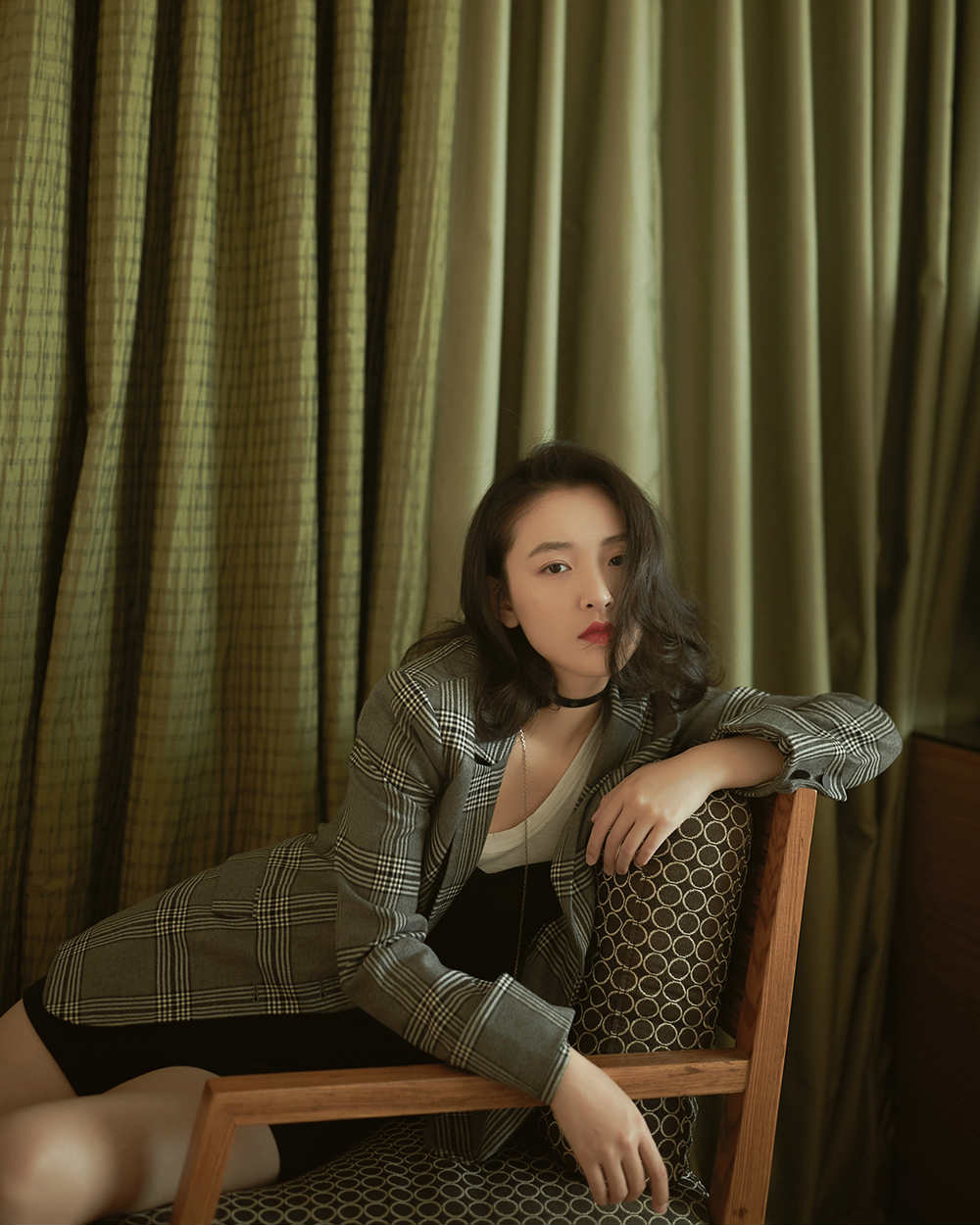 活动当晚,她身着经典格纹西装外套,满满英伦摩登质感,内搭白色T恤和黑色连体短裤,黑白穿搭法则层次分明,尽显傲人大长腿,搭配充满女人味的波浪卷发、黑色chock和一字带凉鞋,整体造型优雅性感和利落帅气并重,女神范儿十足。