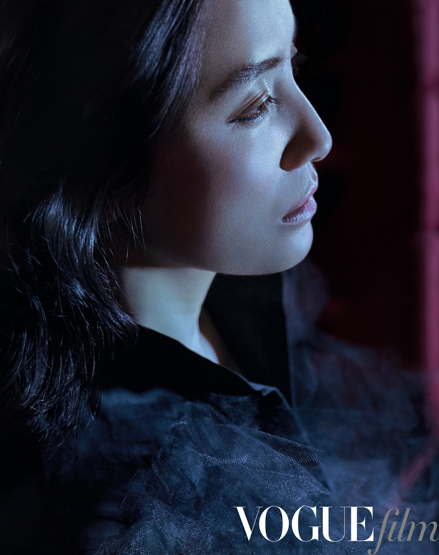 大片中,宋佳独自坐于剧院观众席中,暗雅深沉的色调,极富张力的眼神,只简简单单一束光,幻境成真真亦幻。迷离与光怪中,谈及五迷三道的境遇,谈及荒腔走板的人生,不过戏梦一场罢了。