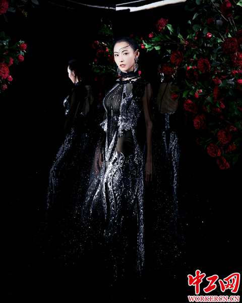 张柏芝一袭绸质黑裙搭配奢华珠宝缀织的别致领口,设计感十足,黑色复古宽檐礼帽知性迷人,极具时尚感,举手投足展示出充满异域风情的高贵与摩登,成熟优雅而不失女人味。