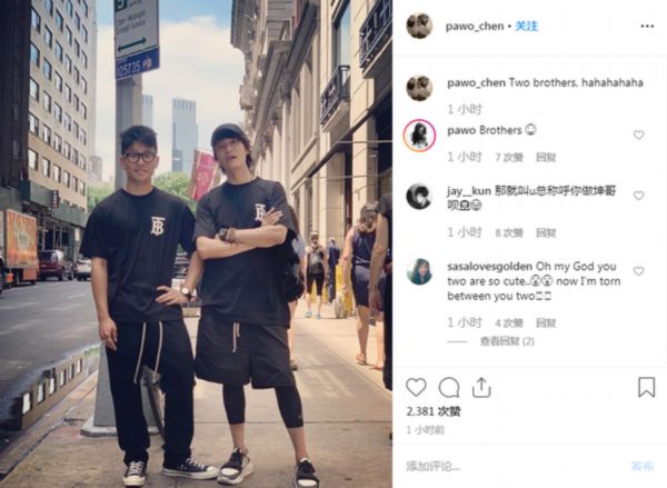 7月12日,陈坤在社交网站晒出与儿子的合照,并配文:“Two brothers, hahahahaha(两兄弟)”。照片中,两人身穿黑色同款T恤,陈坤吐舌卖萌,儿子叉腰而站,画面有爱。已经17岁的陈尊佑,身高几乎和爸爸陈坤一样,引发广大网友的热议。