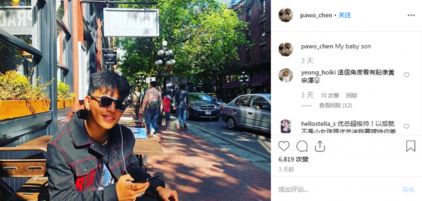 三日前,陈坤还曾晒出儿子的单人照,同样用英文写道:“My baby son”。照片中的陈坤儿子戴黑色墨镜,笑对镜头,显得青春阳光。