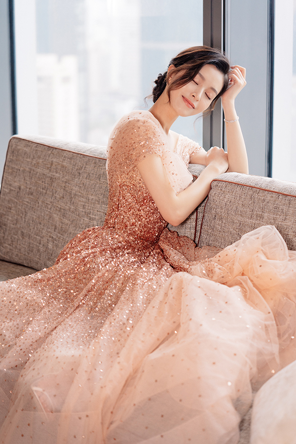 一袭鹅黄色连衣裙配以宽檐草帽,或驻足而立或悠闲地坐在敞篷老爷车中,复古优雅。裸粉纱裙配上枝叶王冠,长裙扬起,仙气十足。