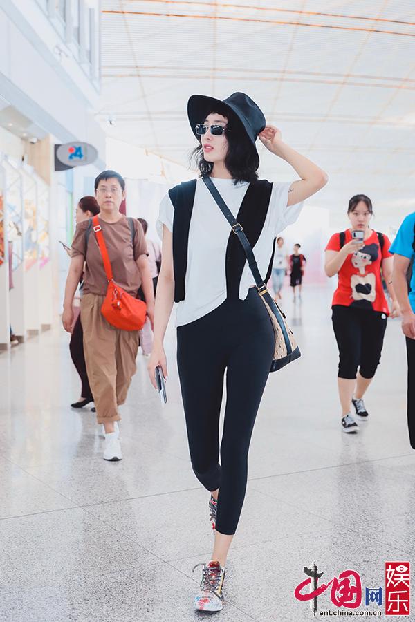 中国网娱乐8月15日讯近日,王紫璇现身机场,宽沿渔夫帽俏皮可爱,休闲宽松白t也挡不住好身材,全黑经典legging搭配涂鸦球鞋,110cm的腿长以及腰臀比令网友直呼羡慕。