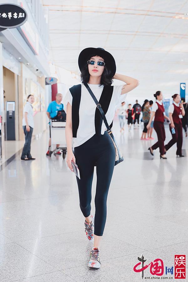 王紫璇运动风造型现身机场 健康清新展现肌肉线条