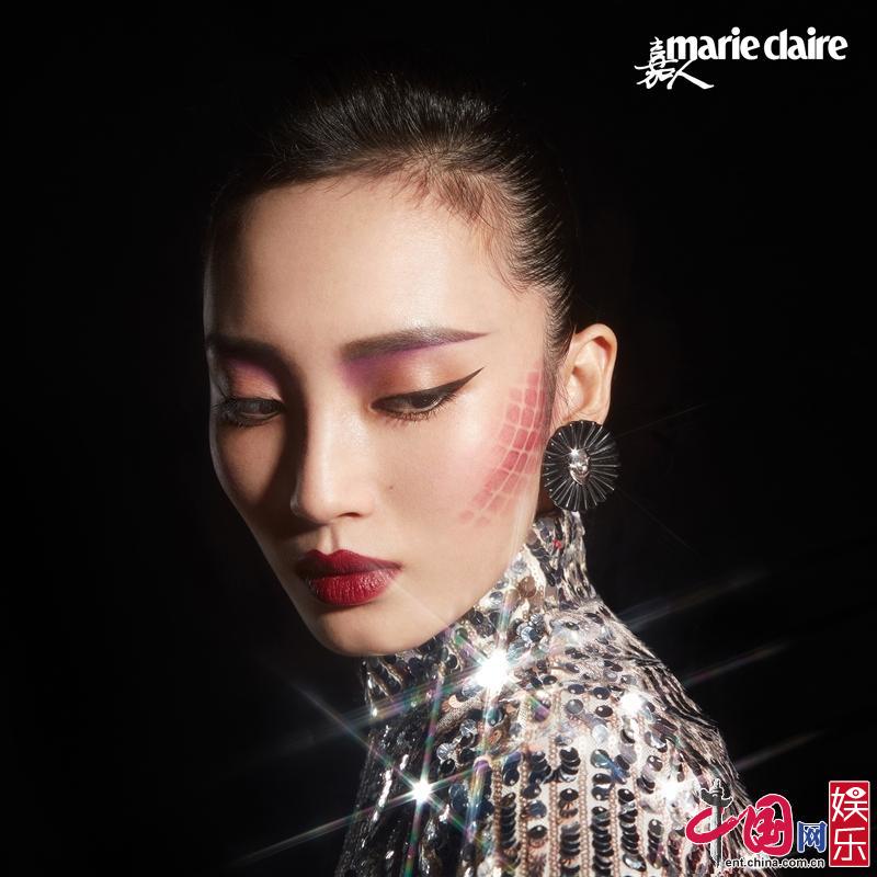 照片中,王紫璇身穿银色旗袍亮片裙,搭配黑色小丑耳环,通过珠光眼影和几何腮红化身舞台巨星。而穿上白色短款系带衬衫后,王紫璇眉毛弯弯,眼神温柔,浪漫而轻盈。