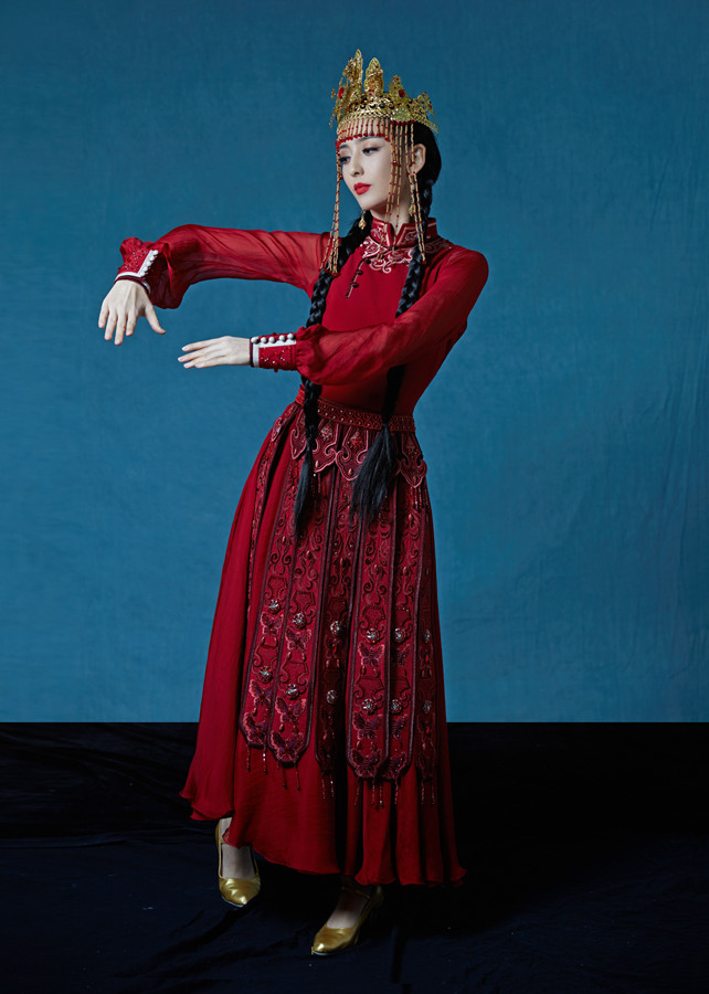 而佟丽娅身着多彩民族服饰,湛蓝如天空、青翠如草原、火红似篝火、素雅成白雪,色调浓淡相宜,释放舞者魅力。演绎各式各样的角色变换,从楼兰公主的优雅神秘到热情活泼、载歌载舞的民族姑娘,超强表现力令人赞叹不已。