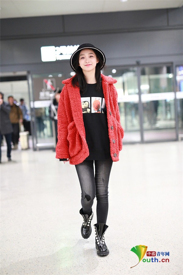 2019年12月8日,上海,何泓姗现身机场。她在机场玩起了“捧脸杀”娇俏可人,穿红色外套更显皮肤白皙透嫩少女感爆棚。