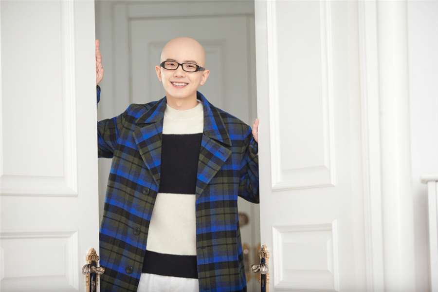 照片中,徐海乔身穿蓝色系拼接毛衣和纯白色休闲裤,尽显冬季时尚搭配,造型清爽干净。写真中,他时而单手放在嘴边抬头浅笑,时而露出深邃眼神低头思考。