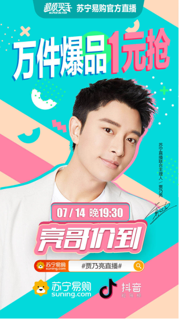 并且据悉, 7月14日晚7点半,贾乃亮将在苏宁易购直播间、抖音苏宁易购超级买手直播间开启入职首播,而 “摇滚诗人”汪峰,将于15日晚开启直播首秀。