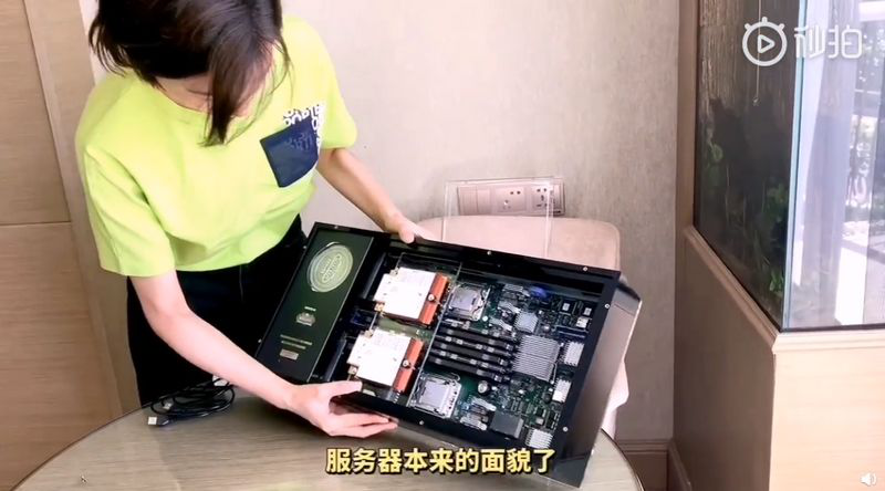 万茜拆开服务器后,便开始为大家一一介绍服务器、编号、以及纯银打造的纪念币。