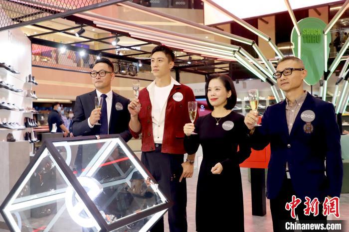 曾参演电影《红海行动》的年轻演员黄景瑜(左二)以ECCO品牌代言人的身份亮相天津。 张道正 摄