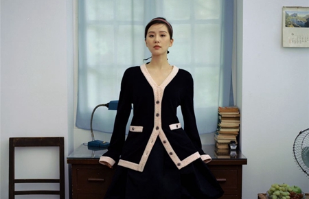 大片中,春夏或一袭垂地紫色纱裙搭配红色长裤置身花园草地,撞色混搭演绎夏日摩登;或身着浅粉色纱裙套装倚靠阁楼窗口,目光惬意灵动,光影交错发丝飘逸,清透感十足。
