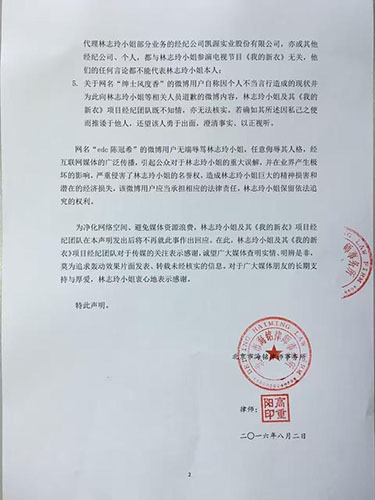 林志玲声明原文二。