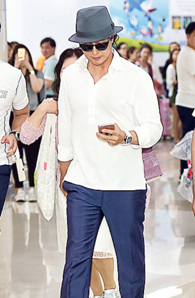 裴勇俊朴秀珍夫妇全黑造型回国(图)
