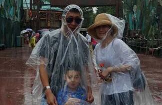 昨晚,男星林永健在微博晒出度假时的全家福,并写道:“风雨无阻。”照片中,林永健与妻儿都穿着雨衣,林永健戴着墨镜,仅露出半张脸,模样搞怪,儿子则躲在他的透明雨衣下……