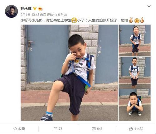 林永健晒全家度假照 为儿子挡雨模样搞怪(图)