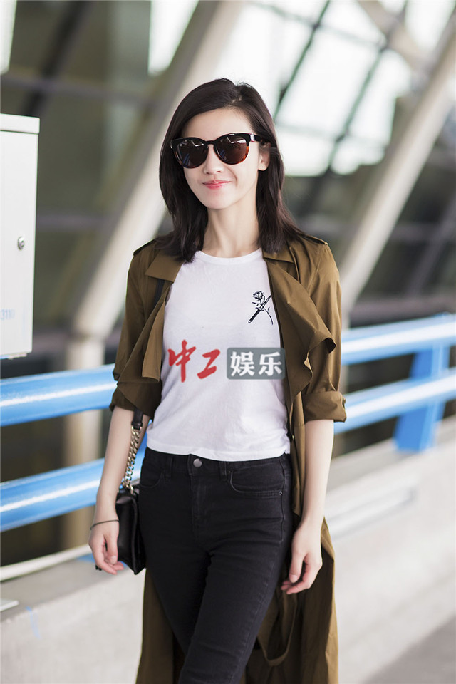 杨子姗黑超风衣现身机场 携作品启程戛纳