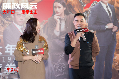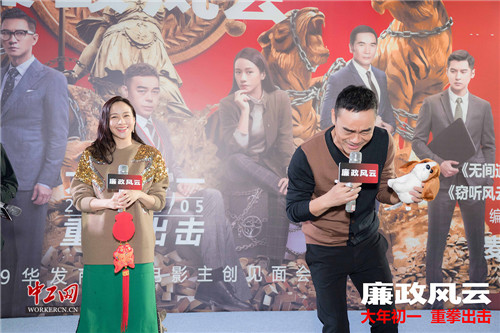 已经连续为8座城市送上诚挚祝福的《廉政风云》,今日亦是来到了浪漫之城珠海。与往日不同的是,“反腐精英们”以一个全新的组合为观众报喜送福。该片导演麦兆辉,携片中刘青云和林嘉欣饰演的廉政夫妻档再组”廉政金三角“,为珠海观众带来不一样的新感觉。临近春节,为了贴合节日的热闹气氛,三位主创也都是”有备而来“,各自为观众带来了一份别致的新年礼物。