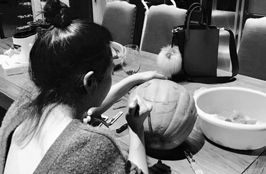 随着万圣节的临近,不少网友已经开始筹划自己万圣节的安排。而殷桃也在自己的微博放出两张自己手工制作南瓜灯庆祝万圣节的黑白照片。