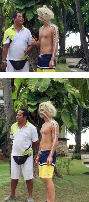 近日,有游客在微博发图,称自己在巴厘岛旅游的时候,偶遇了近年来在好莱坞发展得风生水起的吉飞龙。稀奇的是,这位从广东走向全世界的“中国龙”当时面部还画着奇特的图腾式妆容。消息传开后,不少网友猜测:“吉飞龙又在拍什么大片?”