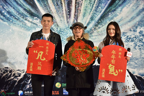 星爷《美人鱼》广州站携林允吴亦凡送福