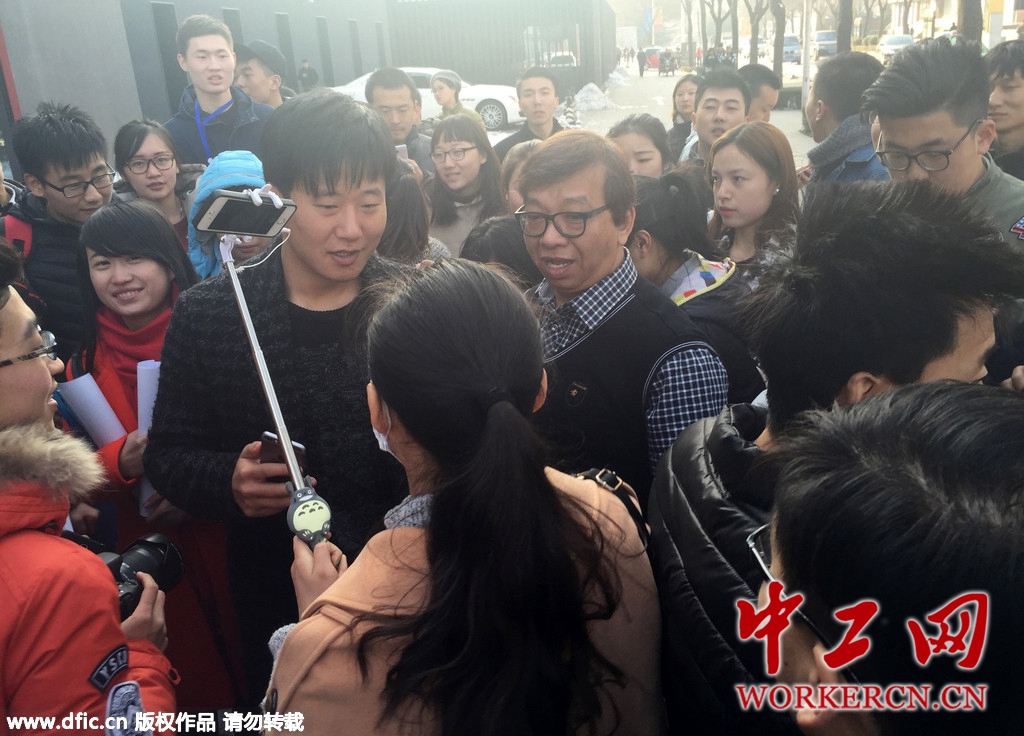 2016年2月2日,陕西西安,电影《美人鱼》记者会。苦等两个多小时,放了媒体、FANS鸽子。工作人员给媒体解释,工作人员与FANS合影。