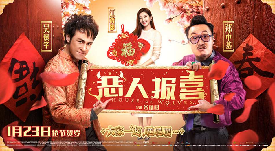 由银都机构有限公司和寰宇娱乐有限公司等出品,香港著名喜剧导演谷德昭执导,吴镇宇、江疏影、郑中基等主演的贺岁喜剧《恶人报喜》,已经于1月23日全国上映。